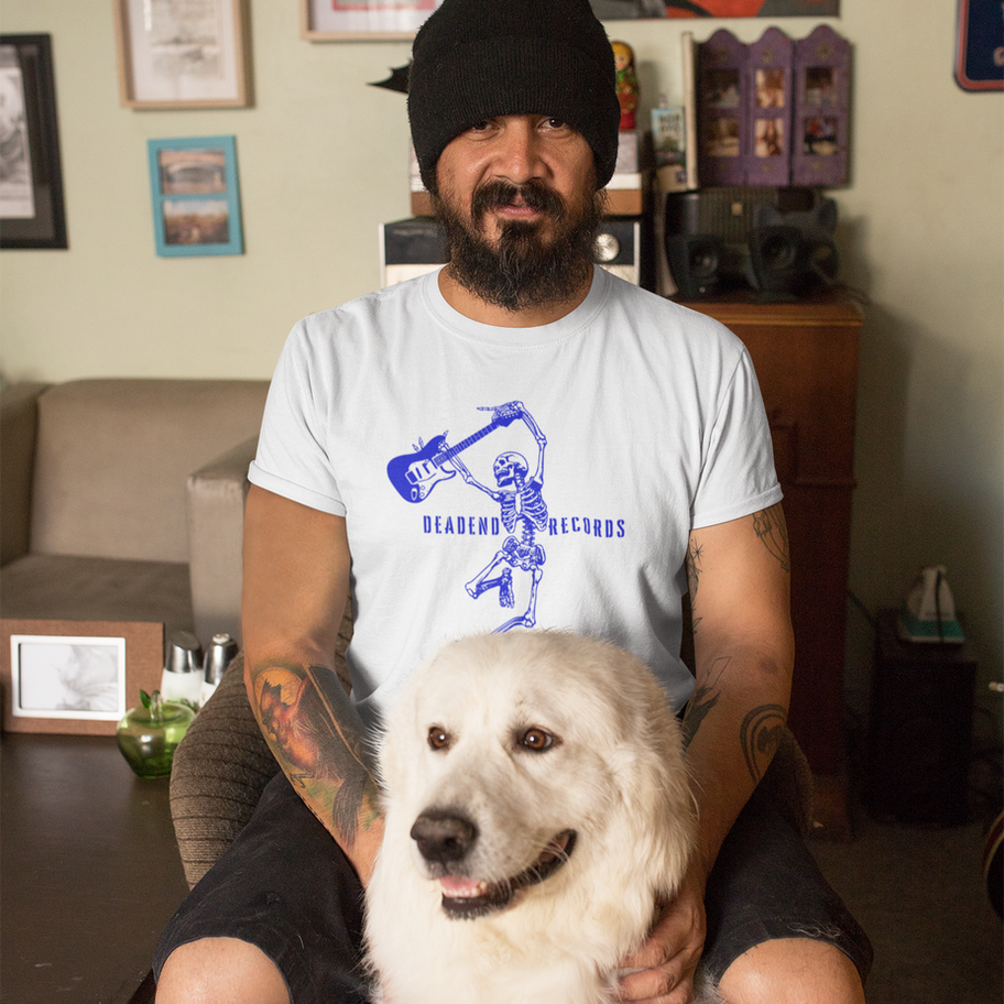 This Deadend Records t-shirt with a cobalt blue, guitar-smashing skeleton on it, is everything we hope we'll continue to be when we're 60: opinionated, chaotic and punk rock as f*ck.